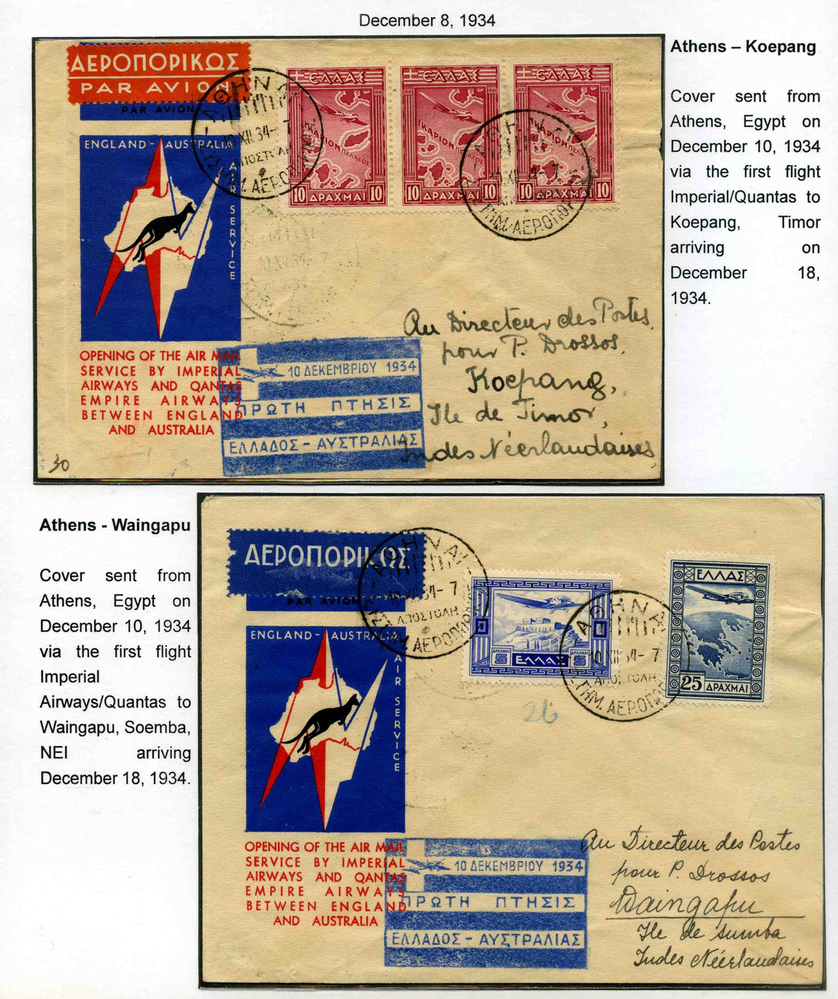 (6) ditto 10/12/34 : Luftpostbrief nach Ndl. Indien, 30 Dr.