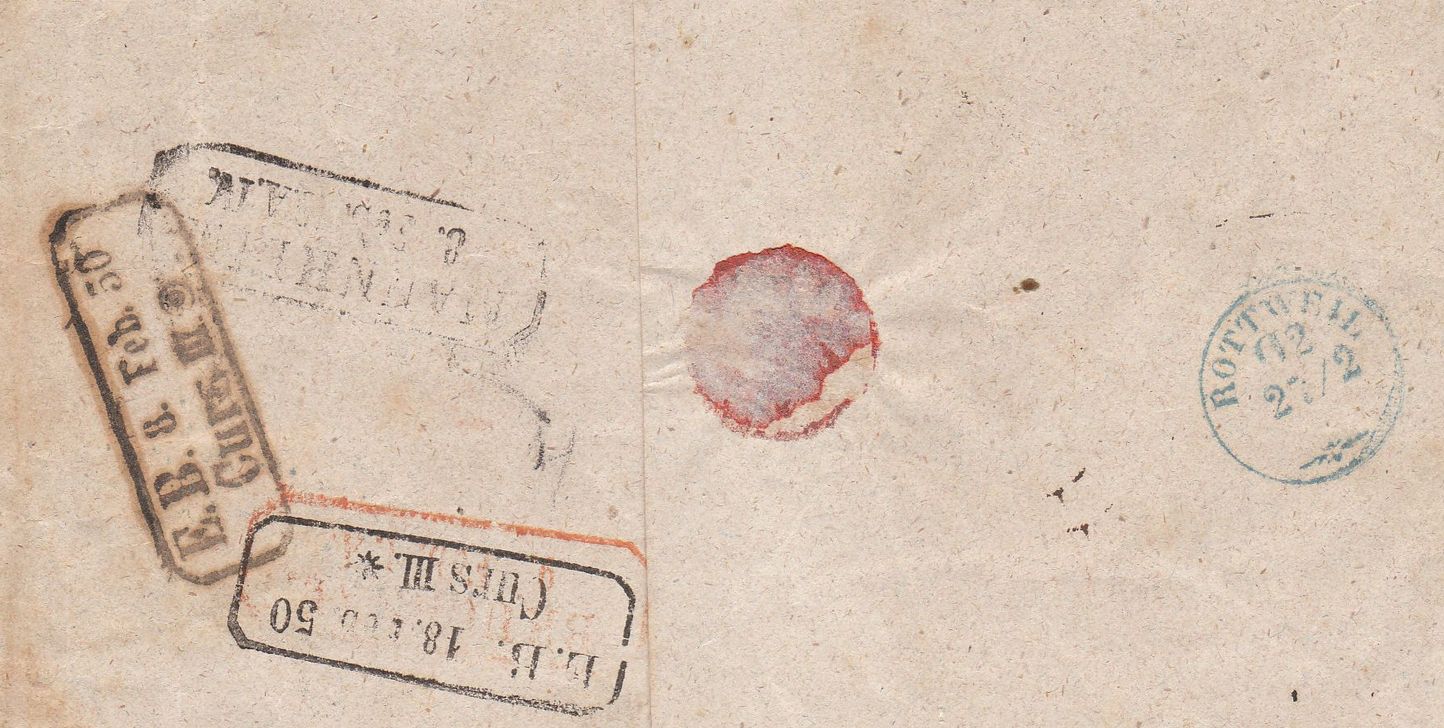 Der folgende Brief vom 6.2.1850 stammt aus dem württembergischen Rottweil, hat aber scheinbar auch etwas mit Baden und Bayern zu tun.