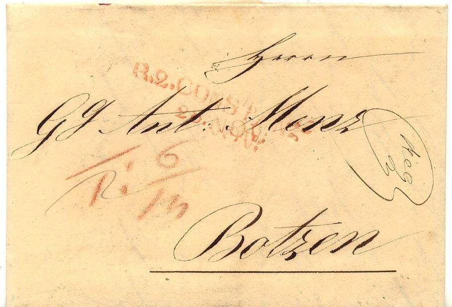 Er wurde aber in Dornbirn, was wohl zur Schweiz gehörte geschrieben. War es von Konstanz billiger? Ich denke mit Botzen ist das jetzige Bozen in Südtirol gemeint. Gehören die Zahlen auf der Rückseite zur Taxierung?