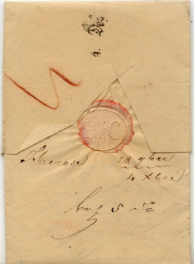 Der 3. Brief nach dem neuen Vertrag kostete 20 Kr., weil er schwerer war, und nach dem kölnischen Gewicht tarifiert wurde. Eigentlich waren ja 4, 8 oder 12 Kr. für einfache Briefe, je nach Entfernung, vertraglich festgesetzt worden. Dieser wog aber mehr und wurde so auf 20 Kr. von Baden allein taxiert! Bayern standen hiervon 10 Kr. zu. Vermutlich wog er 1,5 - 2 Loth kölnisch. Bayern wog nicht nach, sondern akzeptierte die gemeinschaftliche Forderung.