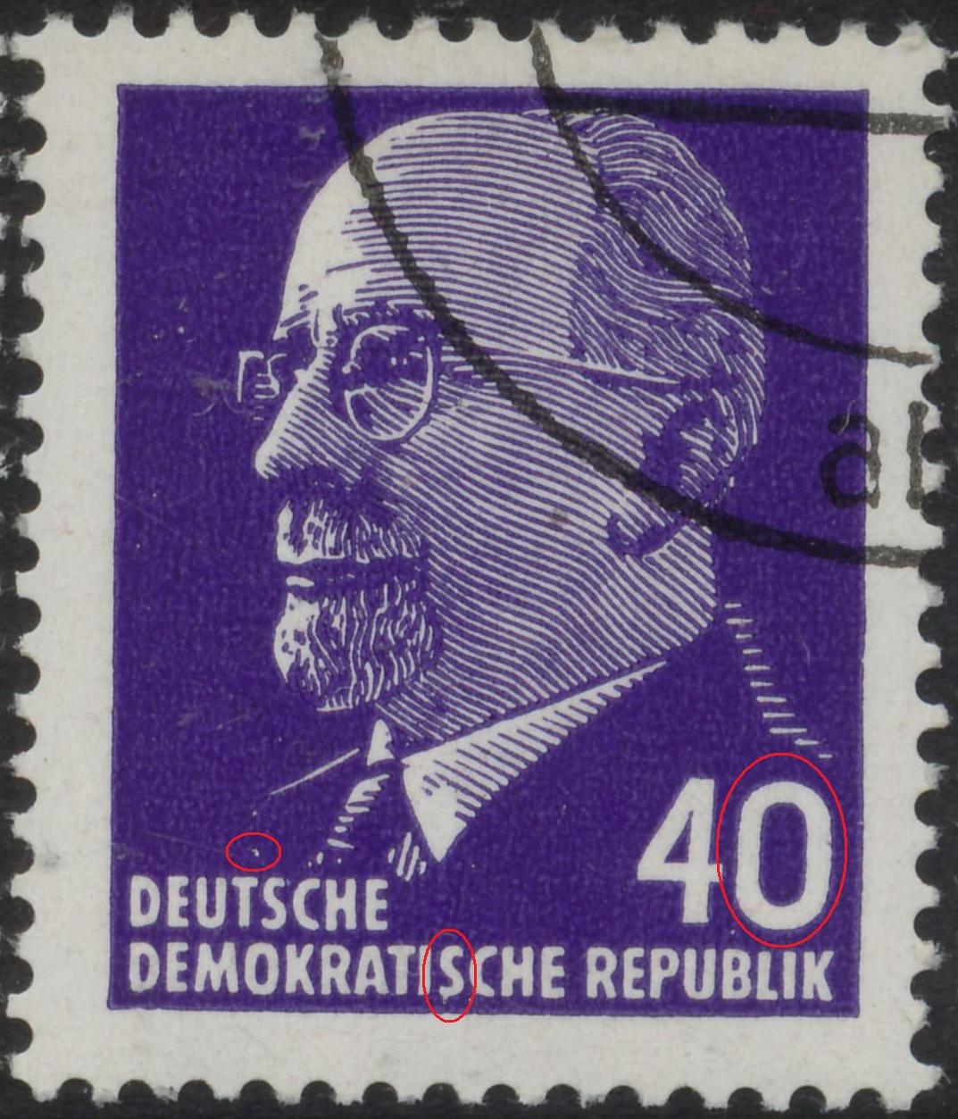 Vielen Dank für die Infos! Auch wenn nichts Interessantes dabei ist, mir macht es immer wieder Spaß mit der Lupe auf Fehlersuche zu gehen! Ich fand das sehr dünne "D" bei der ersten 5 PF Marke interssant, da es ja ansonsten nicht nach einer Farbübersättigung aussieht! Hier noch die restlichen Bilder.