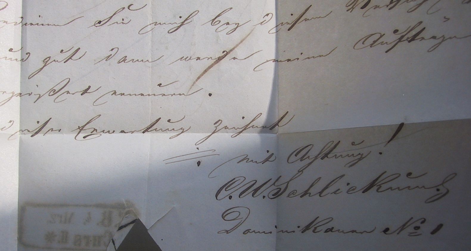 Da von Pirna nach Stadt Wehlen nur 7 km Luftlinie liegen, es also ein Lokalbrief war, dürfte das Franko aus 1/2 Ngr. und die Zustellgebühr aus einem weiteren halben Ngr. bestanden haben - total also der notierte 1 Ngr. siegelseitig.