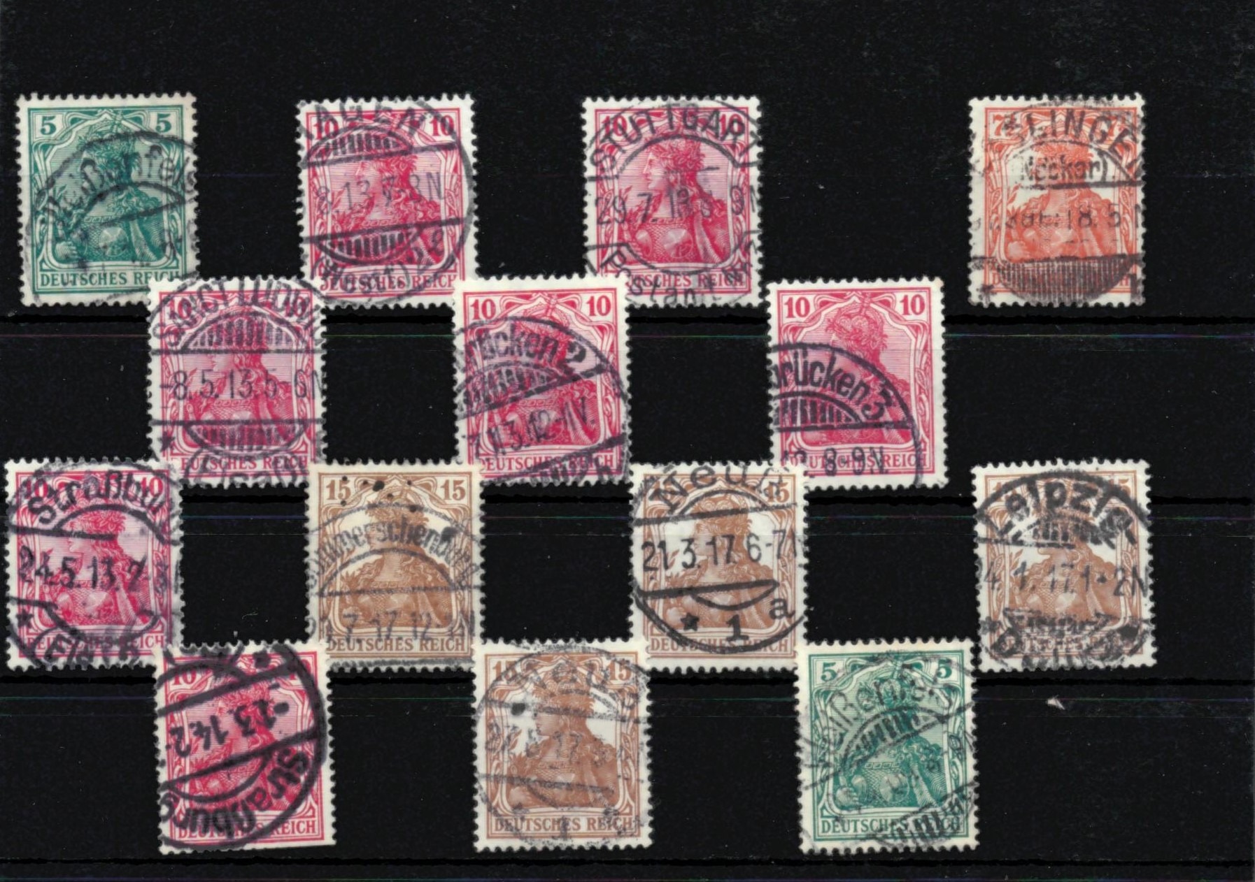 Die Masse dieser Stempel stammt unzweifelhaft von Orten mit einem „ß“, und wenn man noch genauer hinsieht, in über 100 Fällen, von Orten mit der Vorsilbe „Groß“. Aber es gibt auch eine große Anzahl von Orten in dieser Schreibweise, die kein „ß“ im Ortsnamen haben. Das reicht von Aachen über Berlin, Frankfurt, Hamburg bis München. Natürlich vorwiegend von kleineren Städten und Orten, sowie Sonderstempeln in dieser Schreibweise, von Augustusburg bis Zwickau.