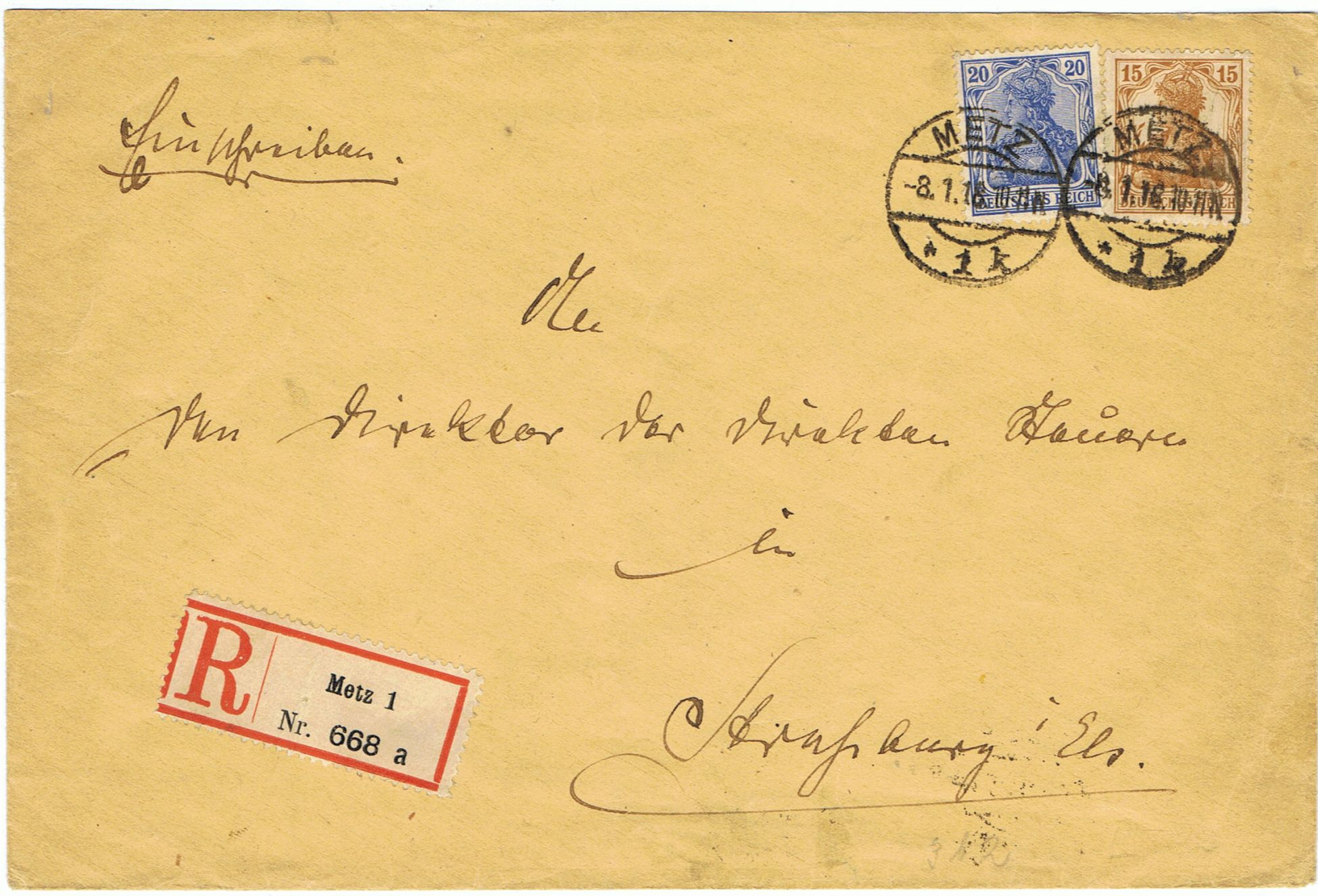 R-Brief von Metz nach Straßburg mit