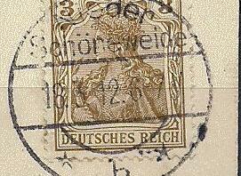 Diesmal waren zwei Treffer darunter. Gießen * 3 e und Mittelebersbach (Amtsh. Großenhain) sind neue Frühverwendungsdaten. Der Stempel von Saarbrücken 5 * (Burbach) * liegt innerhalb des mir bekannten Verwendungszeitraumes.