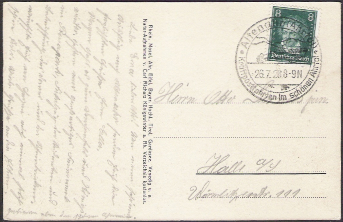 SST ALTENAHR (AHRTAL) vom 26.7.28 war schon einige mal zu sehen,jedoch noch nicht mit solch frühem Datum.