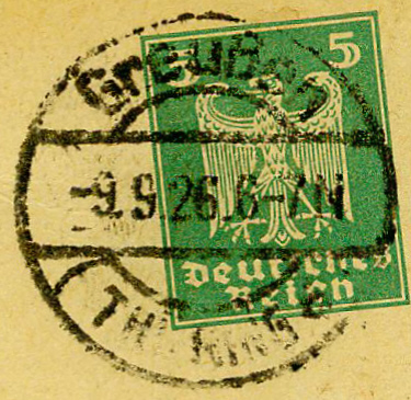 Creußen (THÜRING) vom 9.9.26 , lese es als (THÜRING a) ?