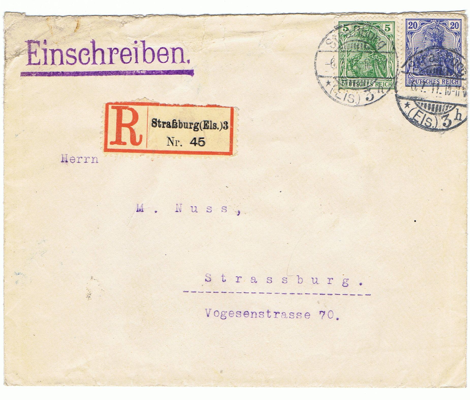 Das Ortseinschreiben aus Straßburg hat mich natürlich auch wegen der Portostufe gereizt. Aber möglicherweise kann ich ja auch noch mit dem Kleinschriftstempel - und dazu noch als Gittersegmentstempel - hier landen: