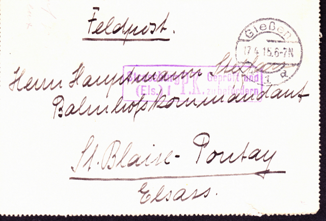 Der Stempel aus Gießen hat, wenn ich es richtig sehe den UB a. Dieser ist von 1912 bis 1927 nachgewiesen.
