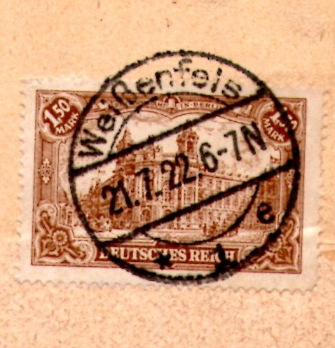 Der Stempel Weißenfels * 1 e ist von 1921 bis 1944 nachgewiesen. Dein Exemplar stammt somit aus der Anfangszeit.