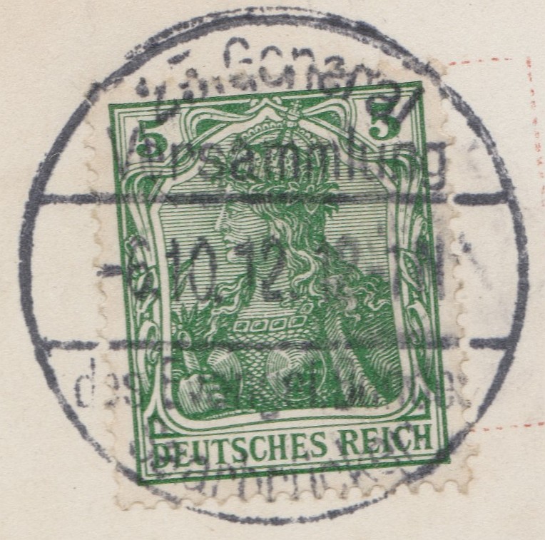 So einen Stempel habe ich noch nicht gesehen (hier der aus „Großenstein“), wo im Bereich der Datumsanzeige (zwischen den Stegen? Oder ist das nur eine Kurzsteg-Linie?) noch zusätzlicher Text („Kr. GERA“) steht.