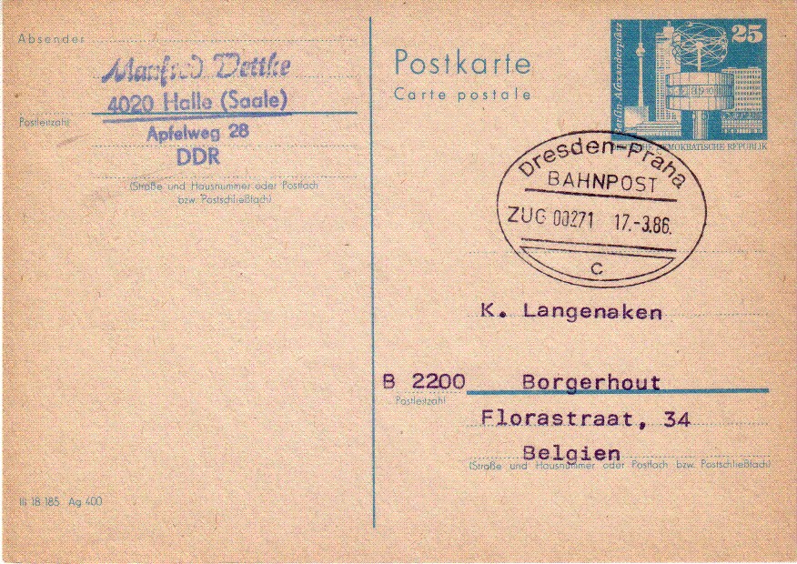 Bahnpost Dresden - Praha c 17.3.86