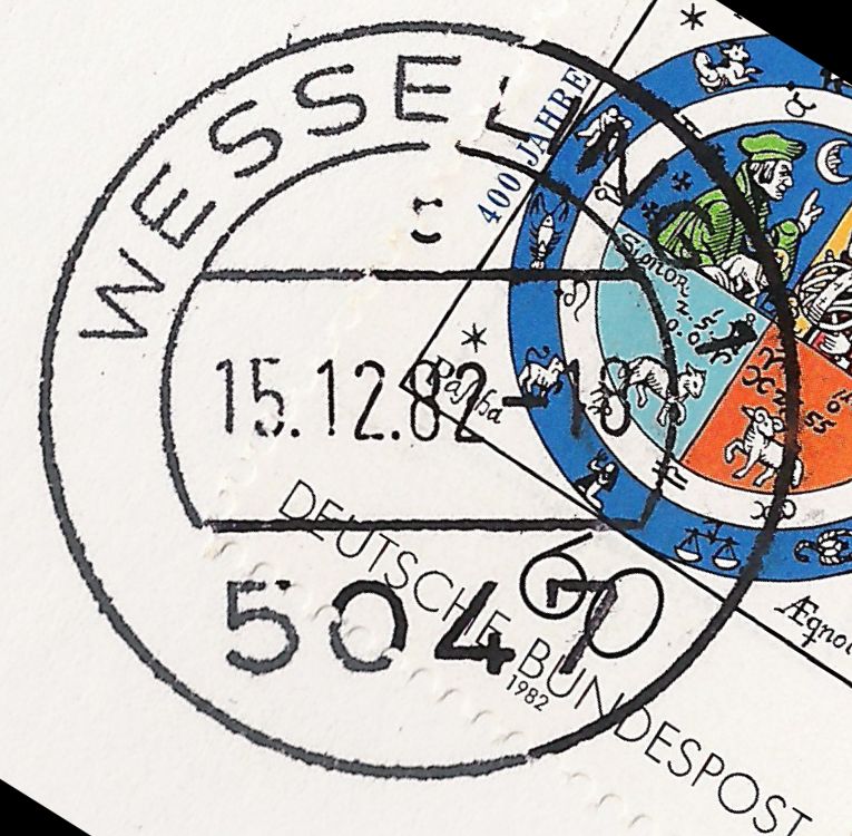 Aus dem Berich der guten alten Bundespost, wo alles doch wahrscheinlich irgendwie vorgeschrieben war für mich eine Neuentdeckung: den Maschinenstempel WESSELING, Rheinl 1 h , wobei der Handstempel WESSELING 1 c ohne "Rheinland" auftritt.