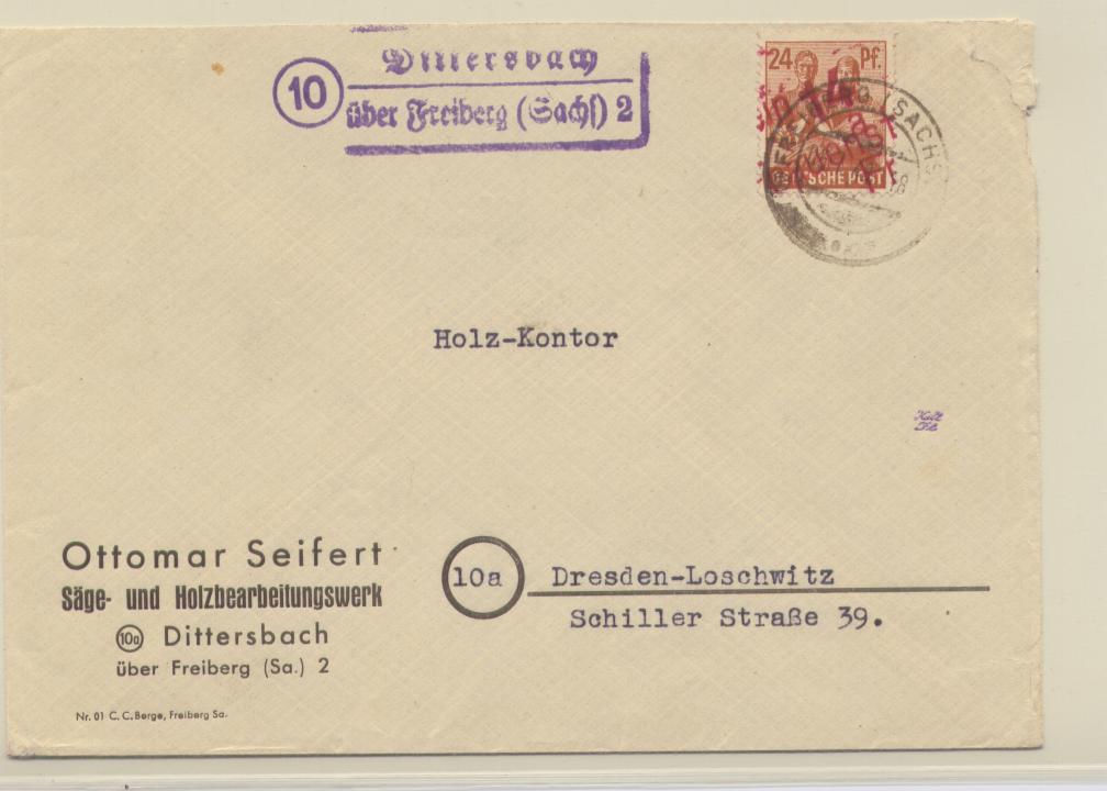 14 Frauenstein rot mit Poststellenstempel Dittersbach