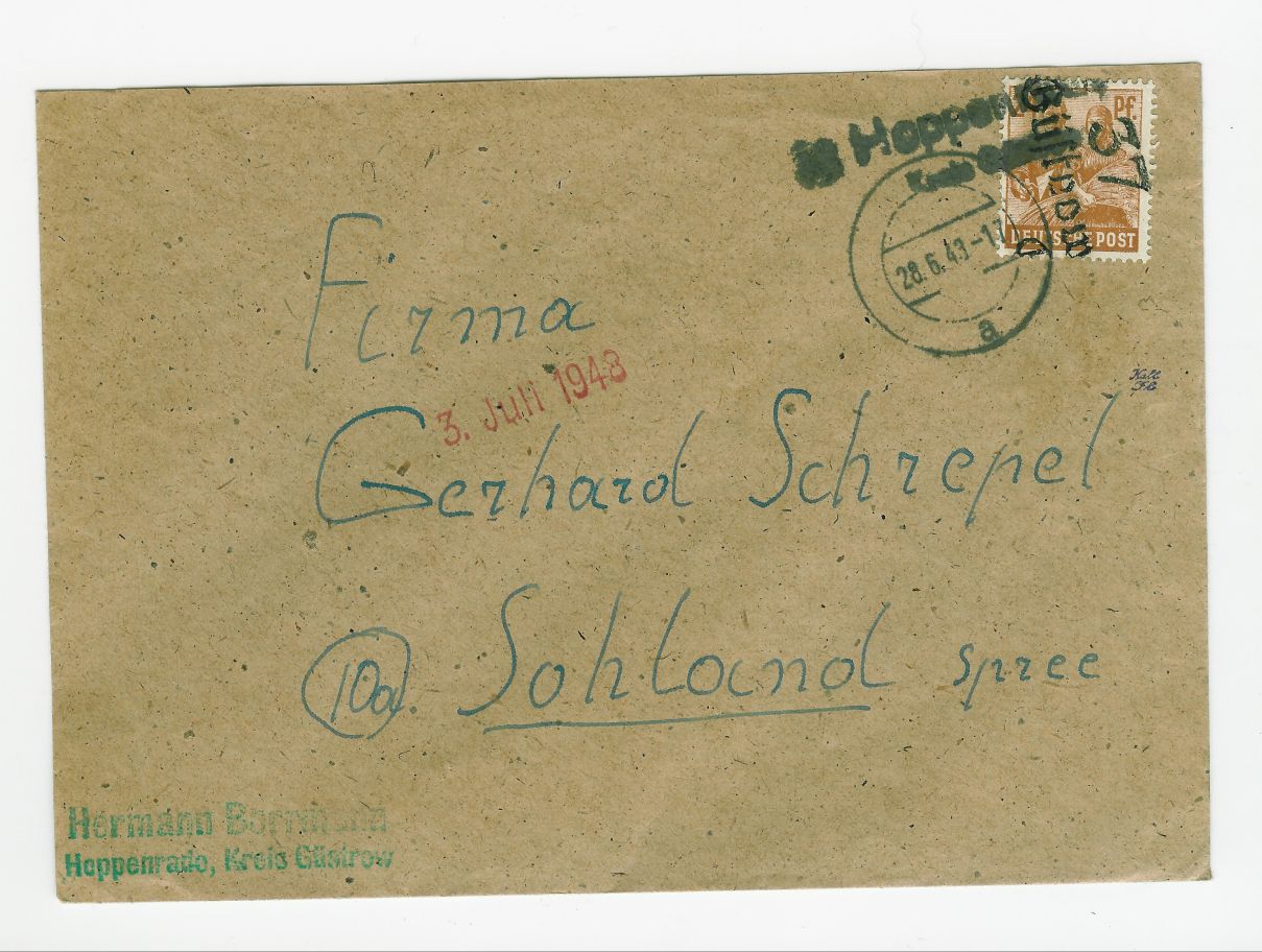 37 Güstrow mit Notstempel Hoppenrade Kr. Güstrow