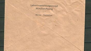 Absender war die Lehrerinnenbildunsanstalt in Muenchen-Pasing. Das Dienst-Siegel mit offenbar aptierten HK ist wohl zur Kennzeichnung des Dienstbriefes vorderseitig angebracht worden. Wenn der Brief sowieso portopflichtig war, war das ueberhaupt notwendig? Warum?
