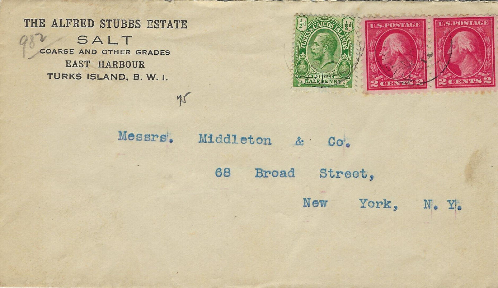 ein Freund von mir möchte wissen, warum auf dem Brie der Turks & Caicos Inseln von 1916 zusätzlich zwei Marken der USA verklebt worden sind. Hat das einen bestimmten Grund?