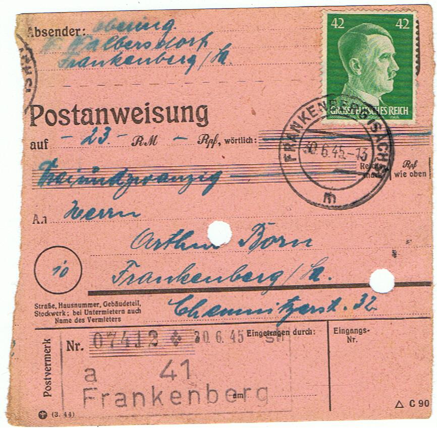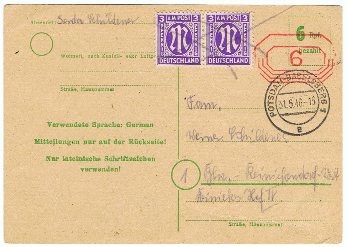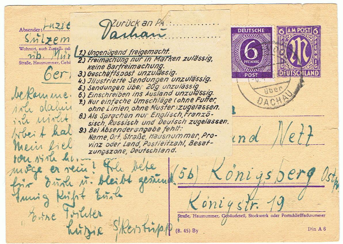 besten Dank für deine Antwort. Ich habe noch eine zweite Karte aus Ende Juli 1945 auch mit 42 Pf. Hitlermarke vom selben Absender und an den selben Empfänger. Da ist auch nichts geschwärzt.