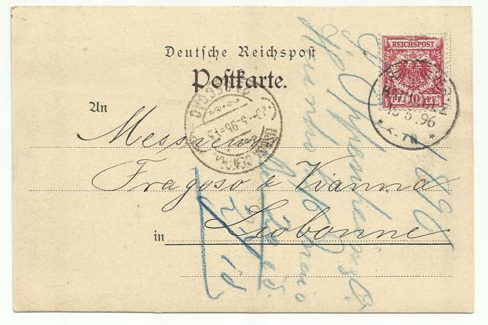 mit KOS Hannover Hainholz 15.5.1896 nach Lissabon Portugal,m.Ankunftsstempel von der Hauptpost in Lissabon (Erklärung des Ankunftstempels, Dank eines Sammlerfreundes buzones,geklärt). -
