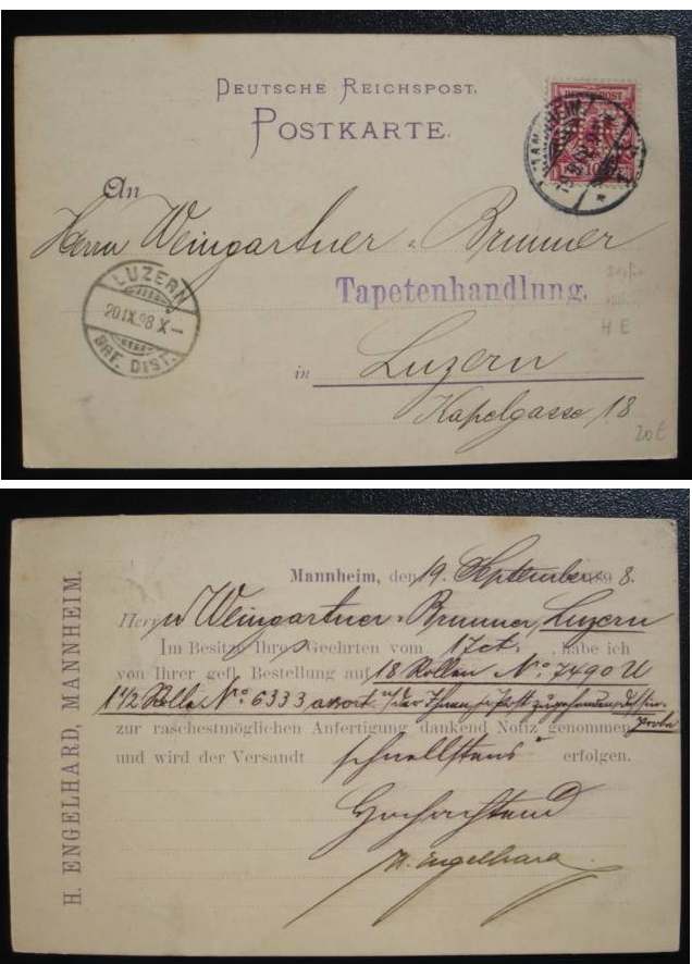 ..hier mal was ganz schönes (fehlende Ecke nehme ich sehr gerne in Kauf).Post Packetadresse mit Firmenlochung MAAS für die Fa. Adolph Maas & Co. in Berlin bekannt ca.1893 bis 1924, auf der Vorderseite 2x 20pf.KA Rückseitig 2x 50pf KA. gelaufen nach Rumänien.