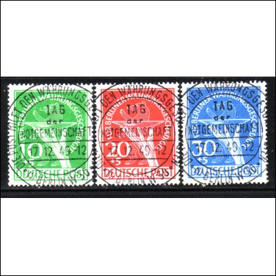 Es ist wie Du richtig schreibst eher unwahrscheinlich, daß ein Sammler die Marken aus dem postfrischen Block heraustrennt und dann abstempeln läßt (noch dazu im Jahre 1949, also in Zeiten wirtschaftlicher Not).