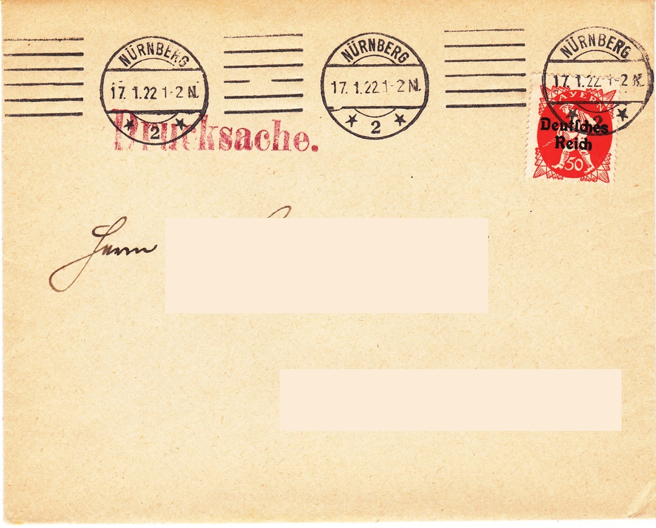Deutsches Reich Inflation, 50 Pf. Bayern Abschied, Mi. Nr. 125 Frankensimon 18. August 2024 um 11:01 Hallo Zusammen,Beleg vom 17.01.22 innerhalb NürnbergDrucksacheGruß Frankensimon