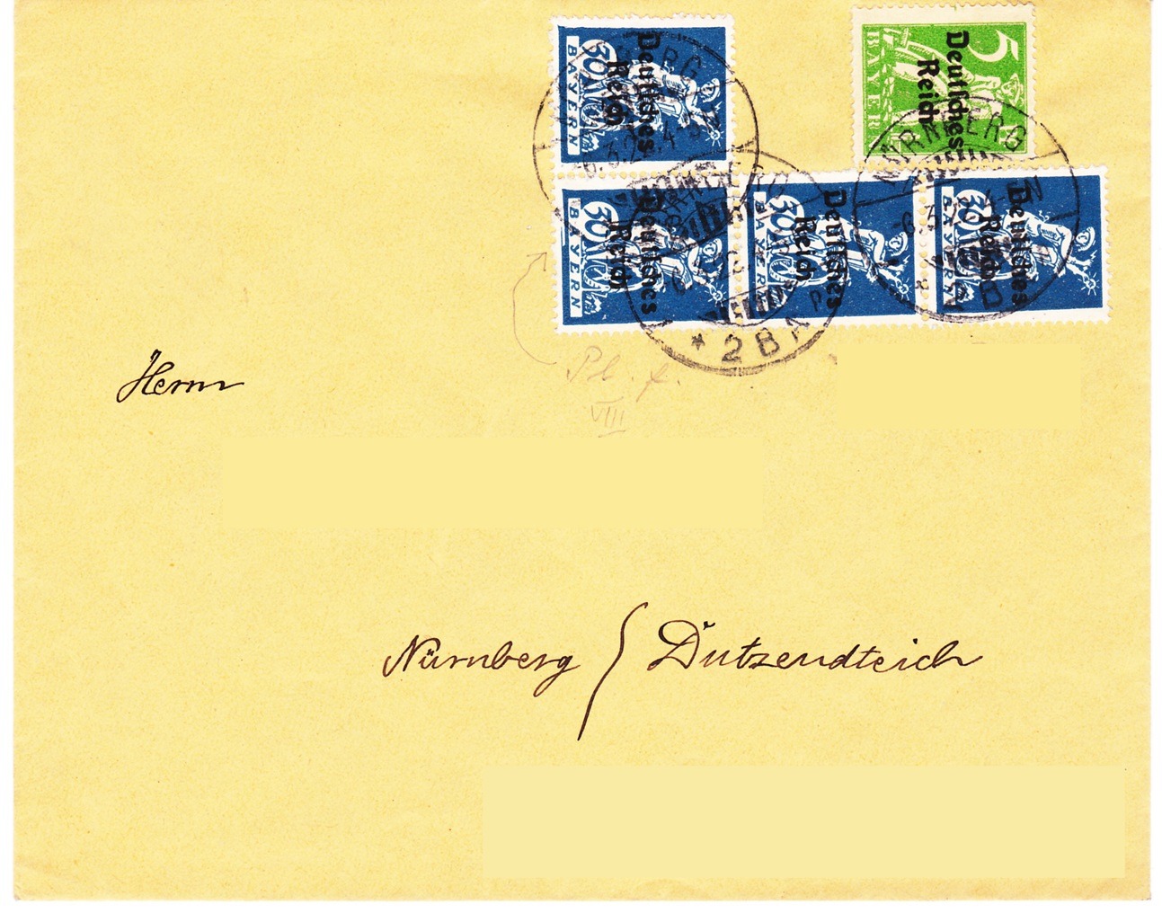 Deutsches Reich Inflation, 40 Pf. Bayern Abschied, Mi. Nr. 124 Frankensimon 16. August 2024 um 09:42 Hallo Zusammen,Beleg vom 29.11.20 innerhalb NürnbergBrief bis 20 gr.Gruß Frankensimon