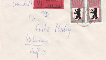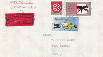 ich habe hier einen portogerechten Brief mit meiner Meinung nach sehr schönen Frankierung. Bei der Wertfindung bräuchte ich ein wenig Hilfe, da DDR nicht so mein Sammelgebiert ist. Für Ihre Hilfe wäre ich sehr dankbar.