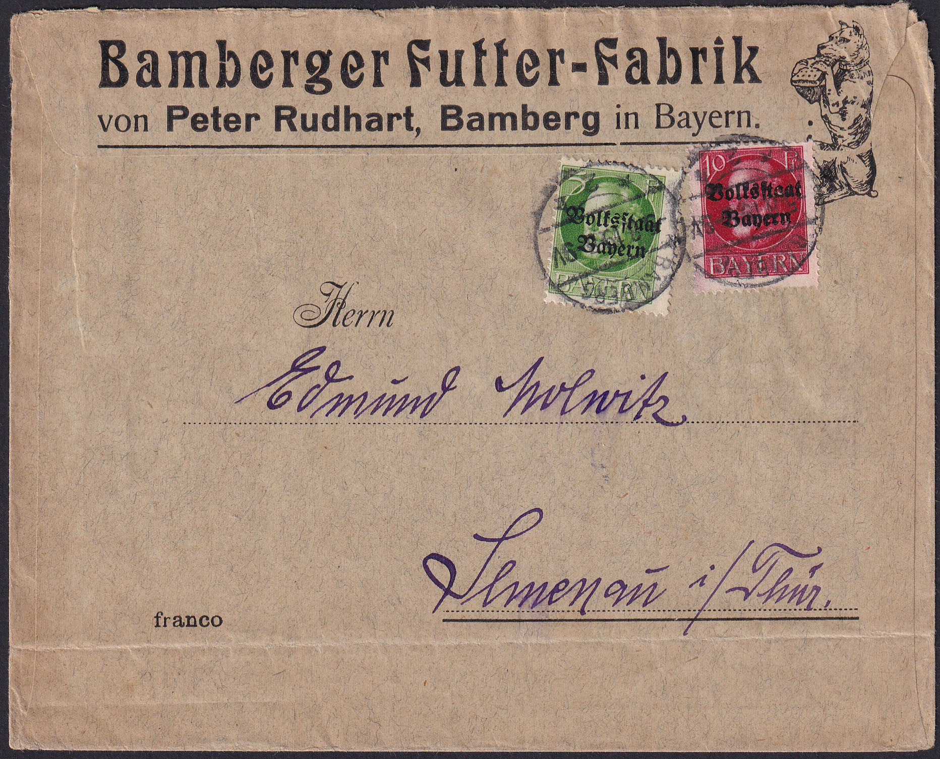 Und noch ein Umschlag aus Bamberg, dieses mal Hundefutter von Hans Rudhart.