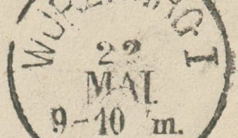 Und wie schnell sich doch die Typen folgten/abwechselten: Der Stempel von Würzburg II vom Mai 1871 ist kein 20 b - Ortsname in Antiqua -, sondern ein 22 nach Helbig (Winkler: 21), und das ein gutes Jahr nach dem Abschlag vom Januar 1870!