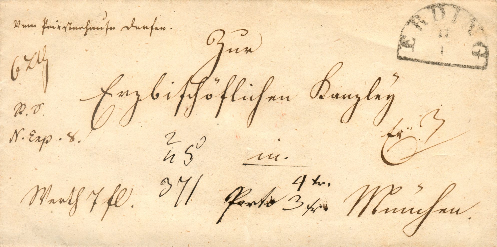 eigentlich ruiniert mir dieser frisch eingetroffene Beleg die schöne Theorie, dass der Halbkreiser von Erding wohl immer auf Dienstbriefen mit kirchlichem Absender/Adressaten in roter Farbe abgeschlagen wurde.