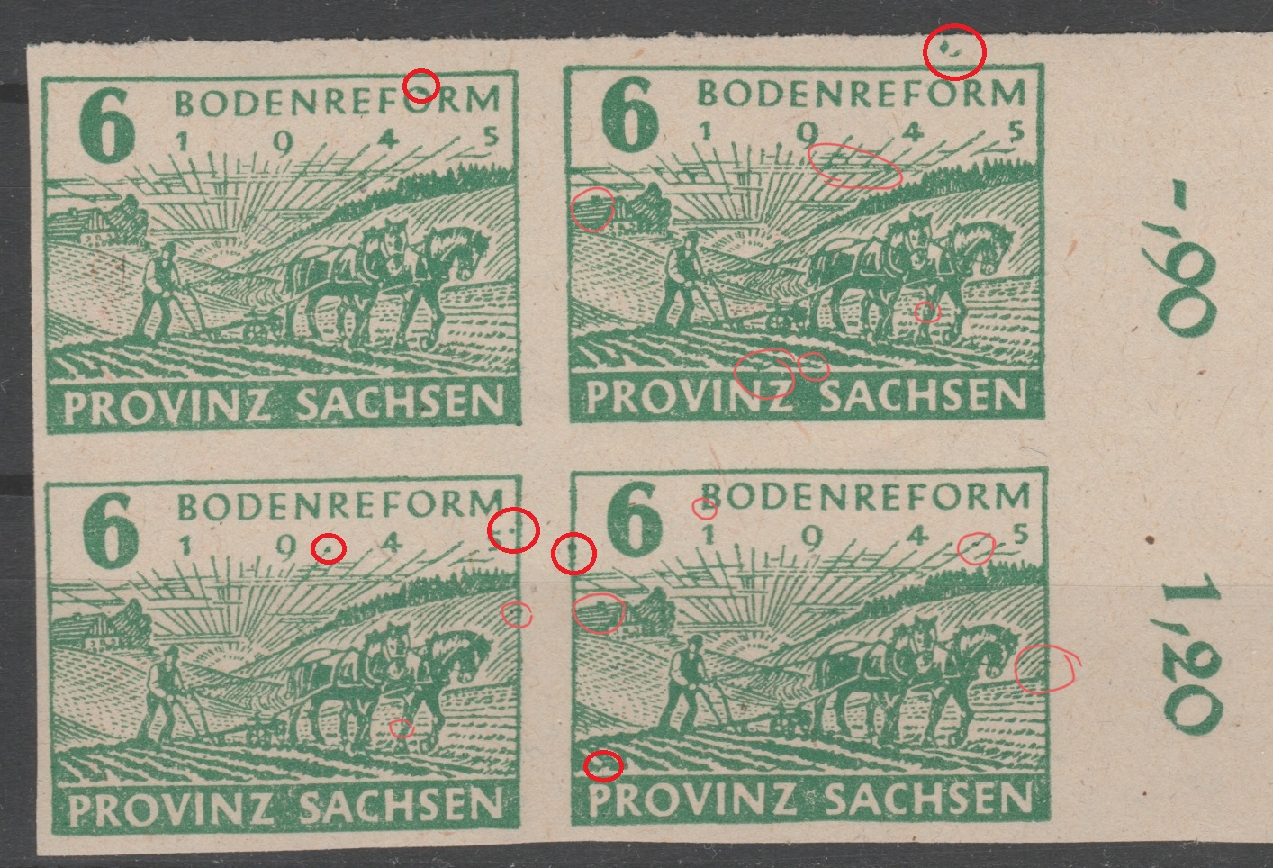 Unten rechts ist eine gewöhnliche polnische Briefmarke bei der die Zahnung mit einer Musterschere weggeschnitten wurde. Müsste MiNr. 2222 sein.