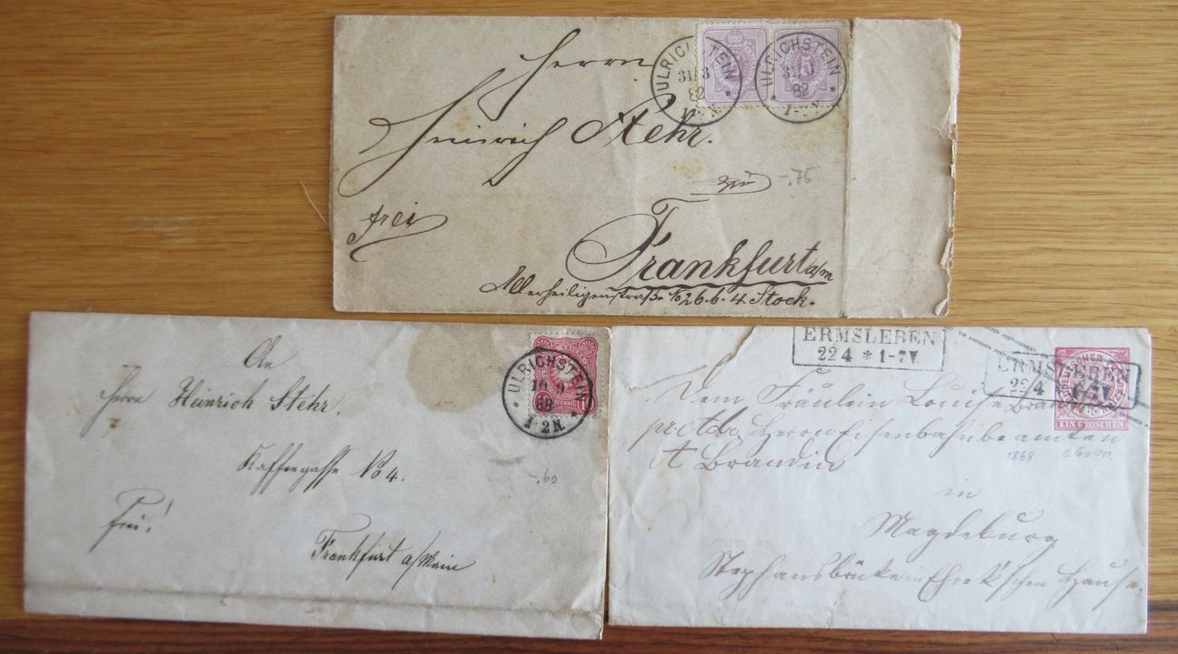 Ich würde gern mehr über diese beiden Belege erfahren. Bei Oberem müsste es sich um Werbepost (?) handeln. Ist dieser Brief gelaufen? (Edit: kann ja eigentlich nicht sein, steht ja keine Anschrift drauf)