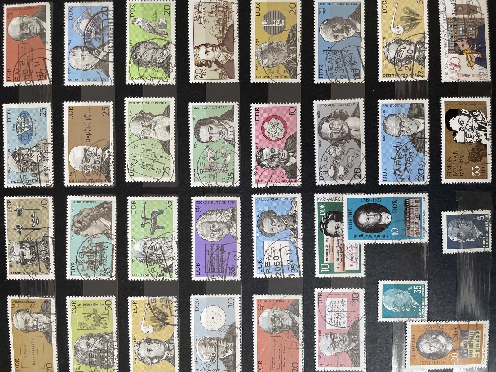Soweit ich das überblicken kann sind es Hauptsächlich DDR-Briefmarken der 60er, 70er und 80er Jahre.