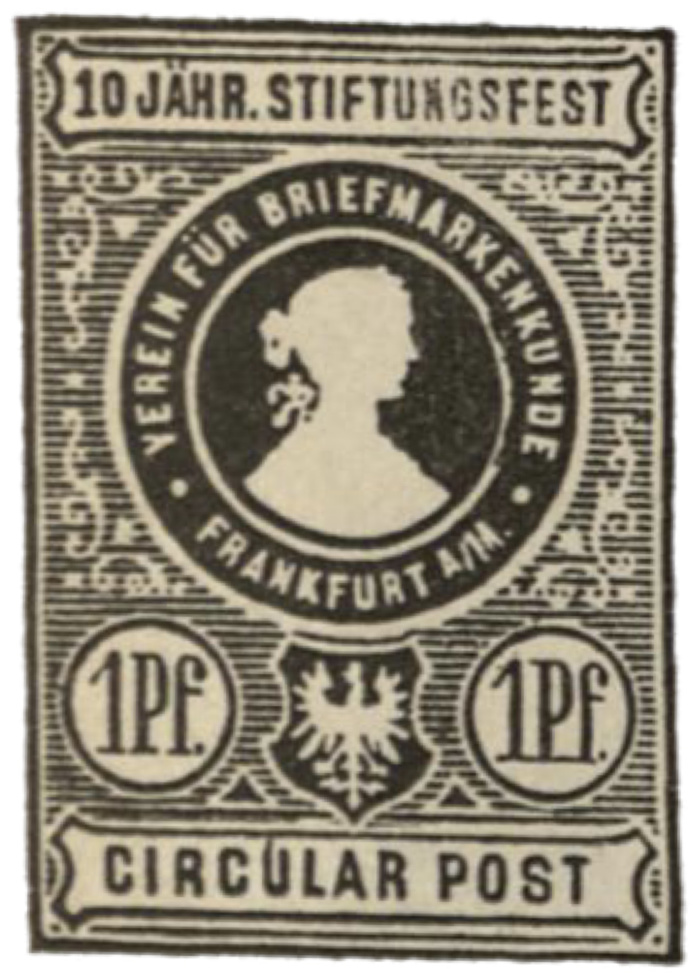 Heute zeige ich die Freimarken der Circular Post aus Frankfurt a.M. zum 10-jährigen Stiftungsfest des Vereins für Briefmarkenkunde Frankfurt.