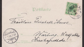 „Sende Ihnen und Ihrer Familie viele Grüße von der Gewerbe-Ausstellung und kann Ihnen die freudige Mitteilung machen das meine Arbeiten mit der großen silbernen Medaille prämiiert worden sind. Mit Gruß Ihr (unkenntlich)