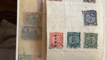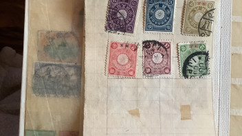Du hast recht , es sind vier sehr alte Blätter dabei wo Marken drauf kleben, das sind so Blätter mit vorgedruckten Abbildungen von Marken wo dann die Marke drauf geklebt ist.