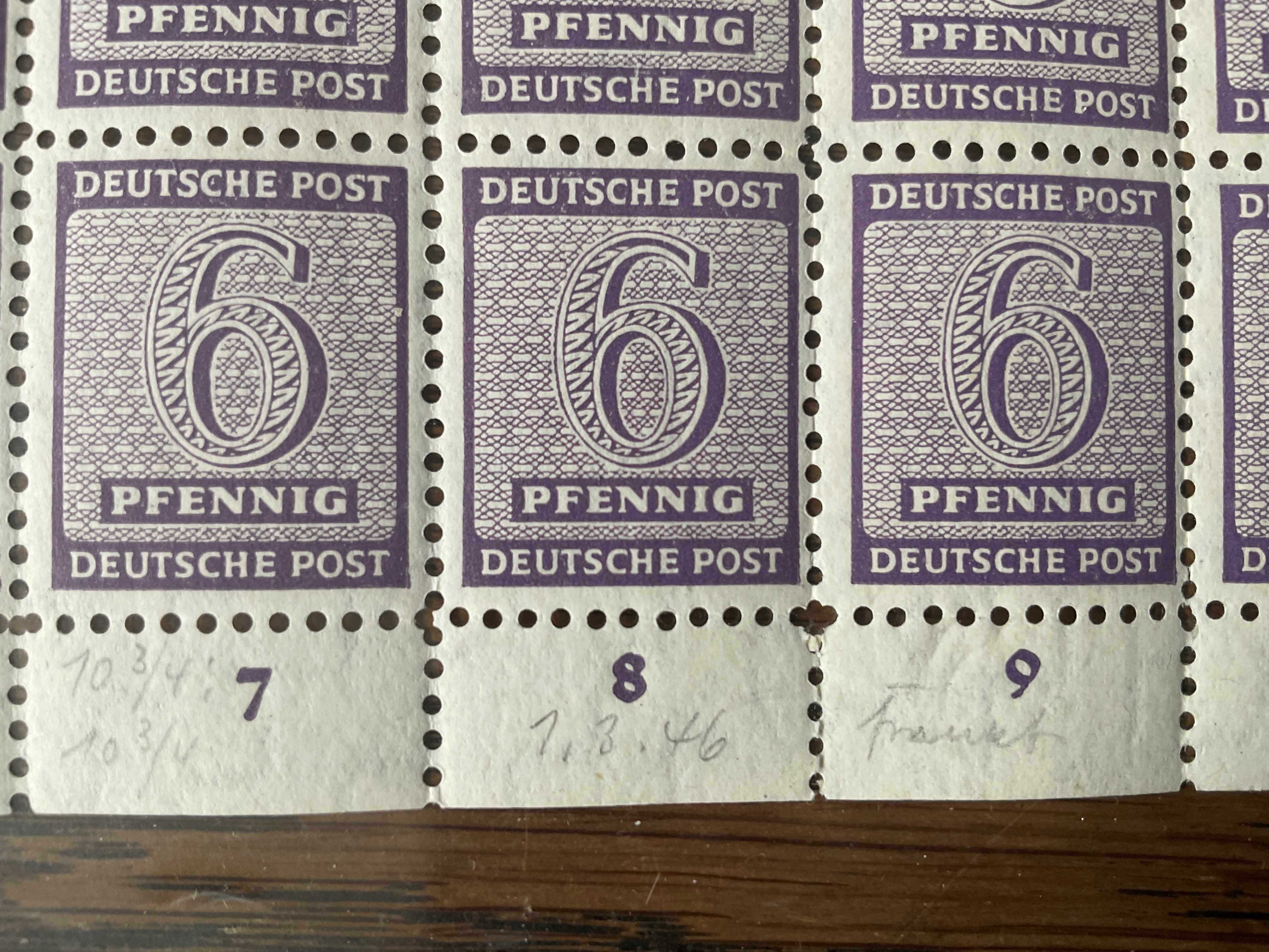Hr. Harder prüft Fredersdorf.Vieles ist sehr wacklig,da der Stempel ,in Privathand, in Schweden rumschwirrt.Vieles wurde im Nov. 45 abgeschlagen,als es langsam die Runde machte,das man dieses gut verhökern kann.Es gab Sammler aus Strausberg,Altlandsberg, Bruchmühle,die brachten ihre DR- Markenbögen zum Postamt Fredersdorf,zwecks Abstempelung.