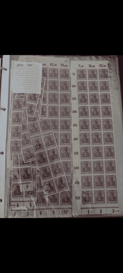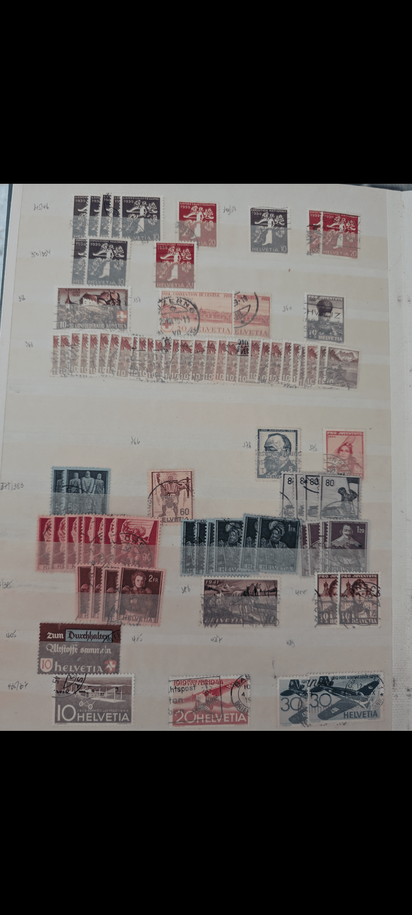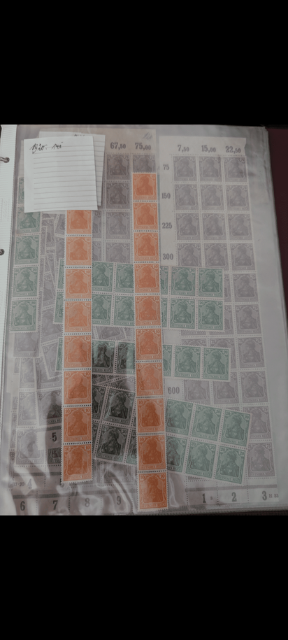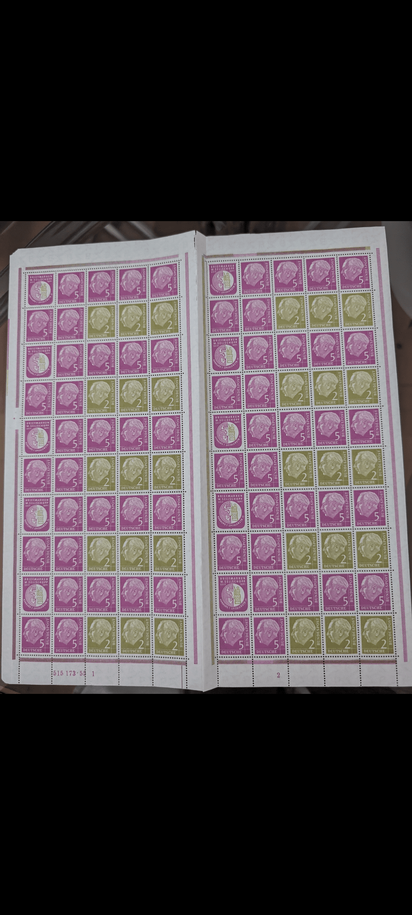 Was das Thema Briefmarken angeht bin ich relativ unbedarft, in den Büchern sind viele Marken aus 18xx-1945. Auch viele Bögen bspw. Heuss, oft vollständig und mit Kleb, teilweise auch unvollständig/lose. Auch sind viele Postkarten und ähnliches dabei aus den verschiedensten Ländern, teils aus dem Familienumfeld - sehr spannend und eher nichts für den Verkauf.