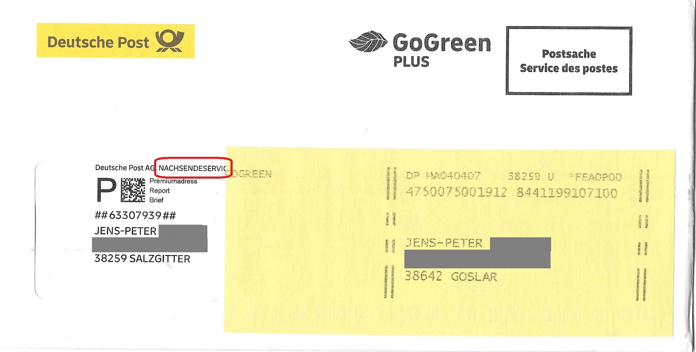Tatsächlich war es deren Ernst, und sogar mit Absicht. Drin war ein Schreiben nach dem Motto "wie Sie sehen, funktioniert der Nachsendeantrag." Außerdem gab es noch eine Broschüre zum betreuten Leben. Wer wäre schon von selbst auf die Idee gekommen, an der neuen Adresse den Briefkasten erreichbar für den Zusteller aufzuhängen und sogar noch sein Namensschild anzubringen???
