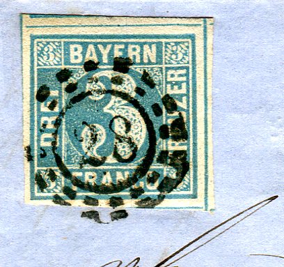 Zum Schluß noch ein Brief aus Augsburg (29.5.1860), dessen Marke als 4a Eingang in mein Album fand, obwohl ich heute sagen würde, es ist eine Platte 5. Marke 4!