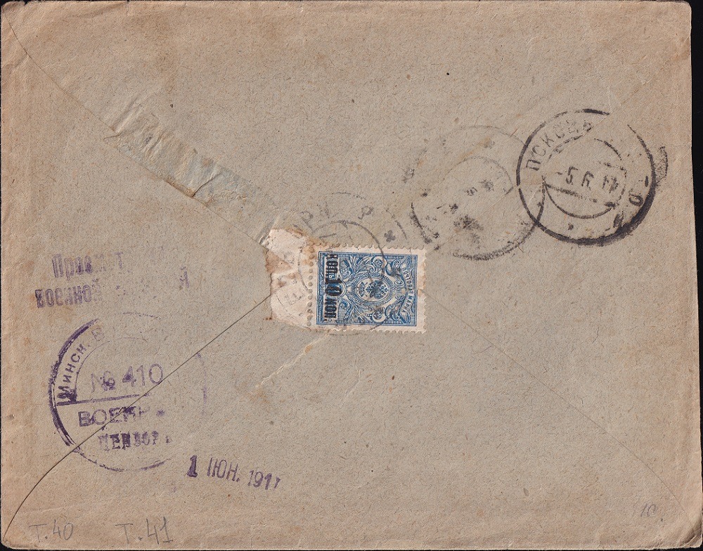 Postkarte vom 19.5.1915, abgestempelt mit Bahnpoststempel "WOLOTSCHISK 48 SCHMERINKA" nach (Nova) Friburgo in Brasilien. Den unscheinbaren Zensurstempel D.Z. im Rahmen hat Speeckaert unter den Regimentern als Typ 8 dem 507. Infanterieregiment Nischegorod zugeordnet, was meiner Meinung nach nicht stimmt, da diese Karte keinen militärischen Bezug zeigt. Speeckaerts Beleg wurde vermutlich bei der Ankunft geprüft und nicht bei der Aufgabe bei der Einheit. Wo dieses dann tatsächlich geschah, kann ich anhand dieser Karte nicht klären.