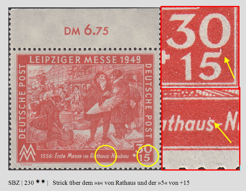 SBZ 228 | ** | fehlende rote Farbe (weißer Strich) über dem »A« vom BRIEFMARKE
