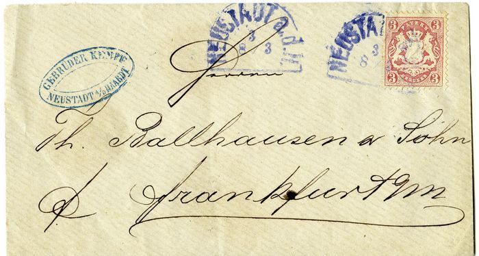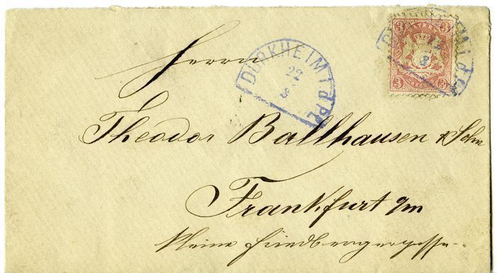 Zwei Umschläge von Dürkheim bzw. Neustadt nach Frankfurt wohl eher mit violetten Abschlägen.
