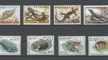 Ein 4er Satz Reptilien, ein anderer 4er Satz Fische.