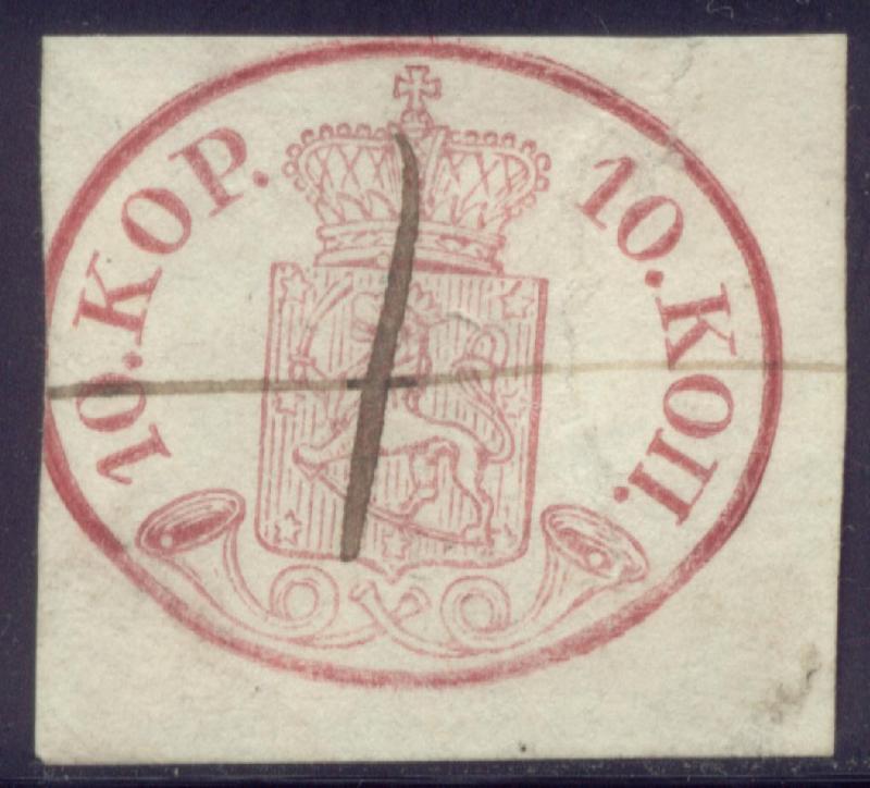 Hier sehen Sie zweimal die 1 Markka braun, Michel 10 aus ca. 1867.