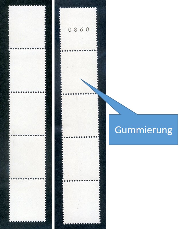Auf der gummierten Seite befindet sich auf einem "markenbildlosen Leerfeld" eine Zählnummer.