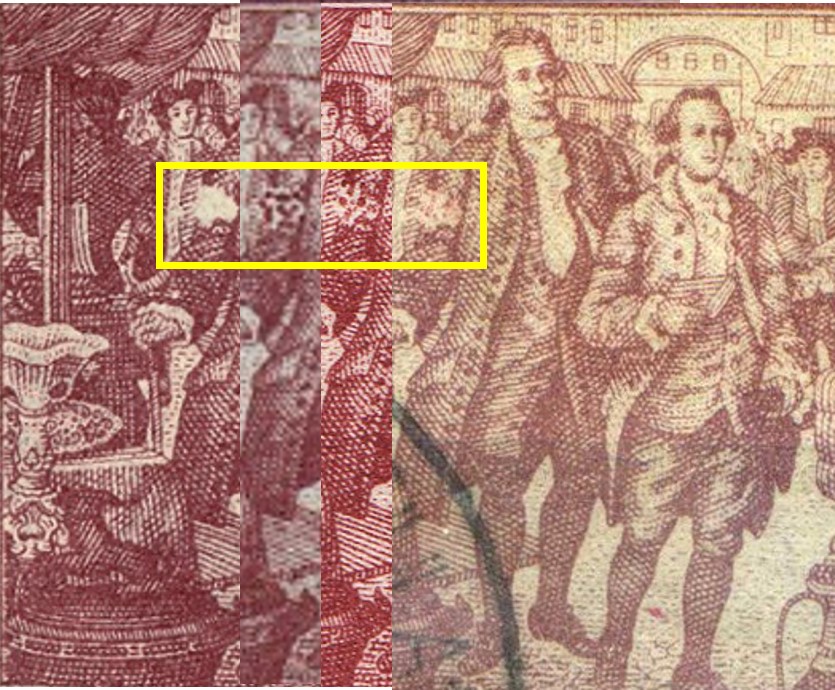 Meines Erachtens sind die rauen Ränder durch stumpfe Schneidemesser entstanden und aus den beiden gezeigten Exemplaren ergibt sich die Frage, in welcher Größenordnung wuden die Blöcke überhaupt gedruckt und später separiert?