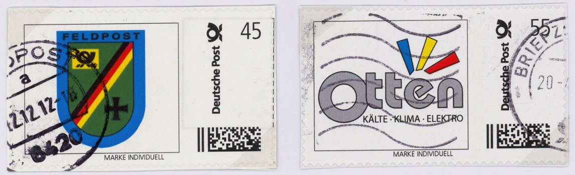 1. eine 55 ct-Marke mit Bezeichnung PLUSBRIEF INDIVIDUELL statt MARKE INDIVIDUELL aus dem Jahr 2012