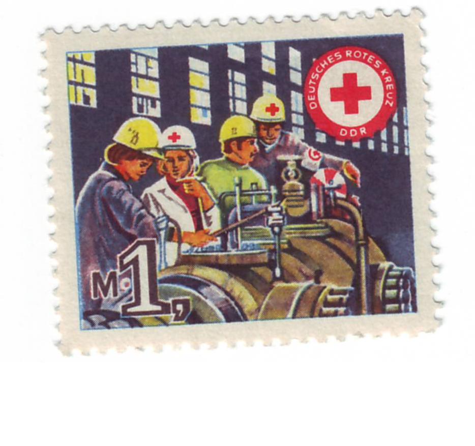 folgende Marke bereitet mir mächtig Kopfschmerzen. Kann leider keine Zuordnung zu einer Michel-Nummer finden. Bin der Meinung das es zur DDR auf Grund des Aufdruckes Deutsches Rotes Kreuz der DDR gehört. Jedoch habe ich bereits mehrmals den Michelkatalog sowie das Internet durchforstet und kann sie einfach nicht finden.